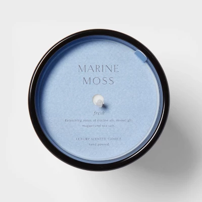 Elevate your space with this Colored Vase Glass with Dustcover Marine Moss Candle Blue – Threshold™. It features marine moss complimented by muguet and sea salt to infuse your surroundings with a soothing scent. The glass vase adds a touch of elegance to any room. Whether you’re unwinding after a long day or setting the mood for a special occasion, this Colored Vase Glass with Dustcover Marine Moss Candle Blue – Threshold™ creates a relaxing ambiance.