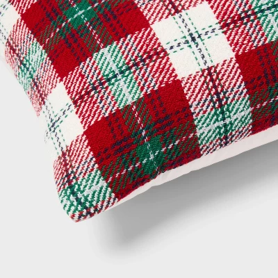Add a festive vibe to your home decor with the Holiday Decorative Throw Pillow from Threshold™. This decorative throw pillow is designed in an oblong shape with allover plaid print for charming seasonal style. Made of 100% cotton fabric with 100% polyester fiber filling, this novelty throw pillow is finished off with sewn-seam closures for a neat look.