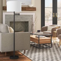 16″ Metal Column Swing Arm Floor Lamp Black/White – Threshold™: Adjustable, Modern Design