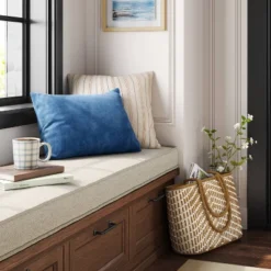 Infuse elegant style into your living space with this Blue Oversized Washed Cotton Velvet Lumbar Throw Pillow from Threshold™. Featuring a soft and smooth, 100% cotton velvet shell with soft filling, this oversized lumbar pillow adds comfort and style to any chair, sofa or bed it’s tossed on. Best of all, it’s designed with a hidden zip closure for easily removing the pillow cover. Designed in blue hue with a washed finish, it’s sure to complement a variety of decor styles.