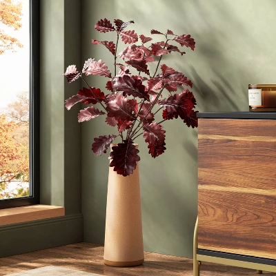 Bring the warmth of autumn into your home with this Artificial Oak Branch from Threshold™. This artificial branch features purple oak leaves to lend a natural touch in your space without the need for upkeep. Arrange the purple oak branch in a vase alone or style with other real or faux stems to create an eye-catching aesthetic.